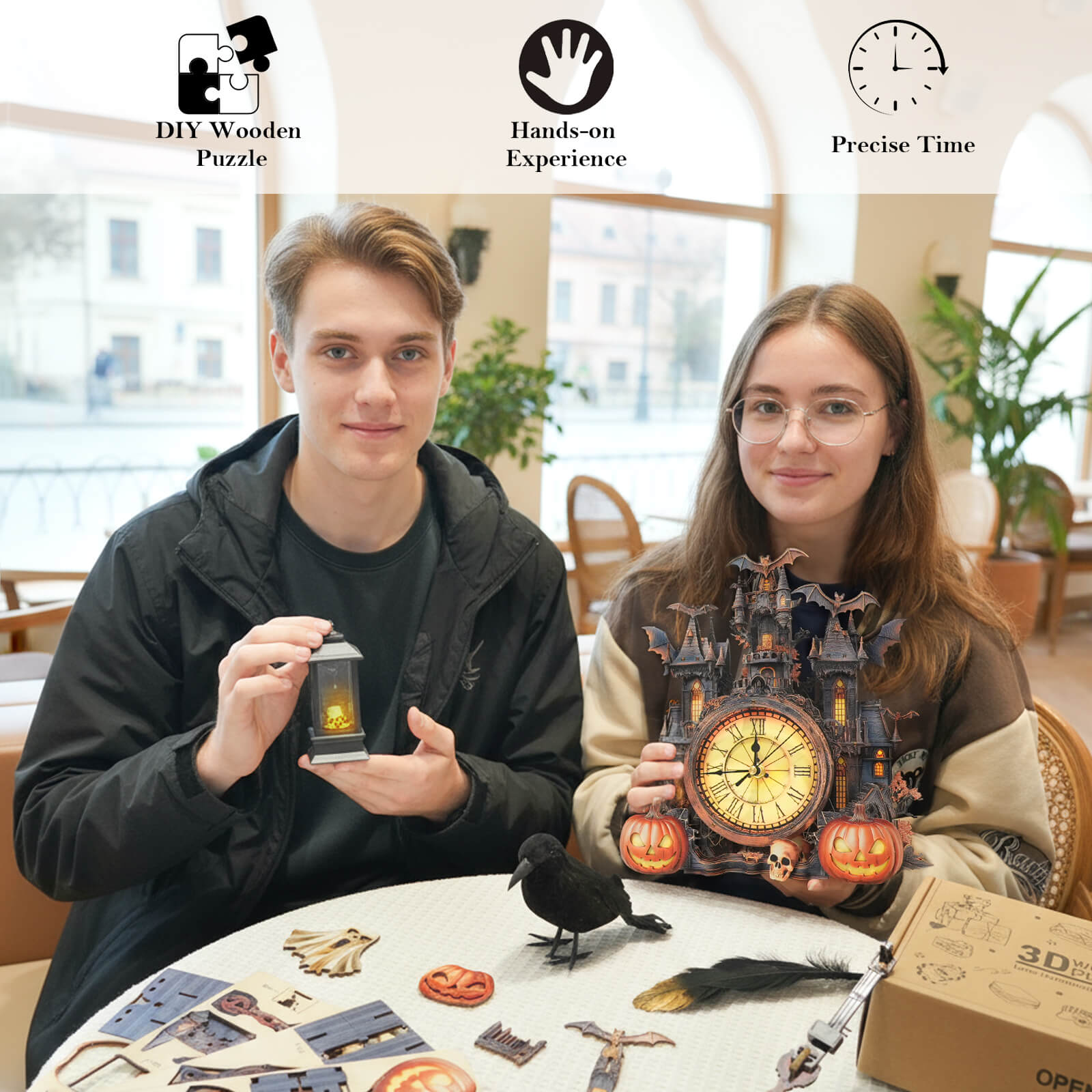 Geheimnisvolles Schloss – 3D Holzuhr Puzzle Bastelset