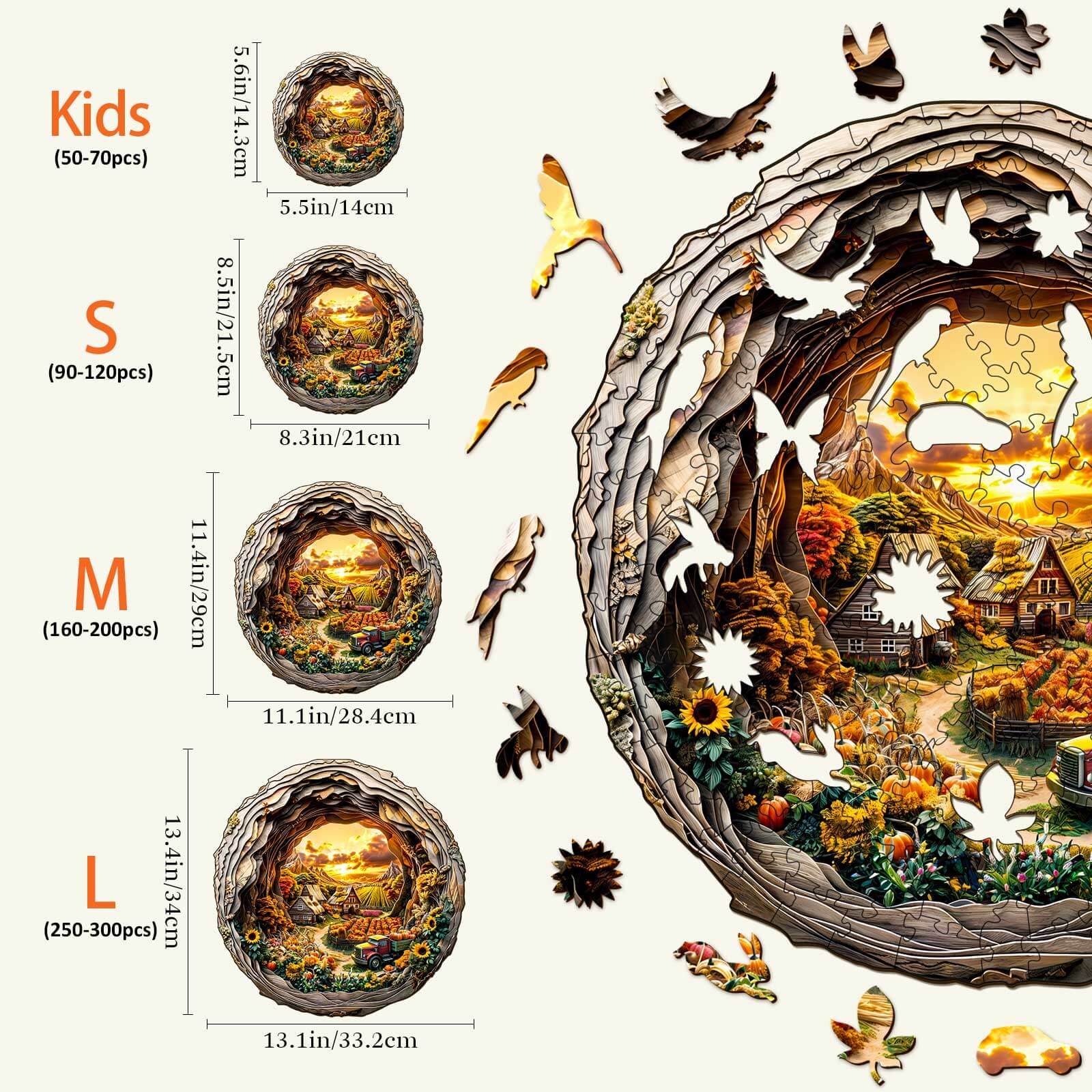 3D Autumn Farm-2 Wooden Jigsaw Puzzle - Woodbests