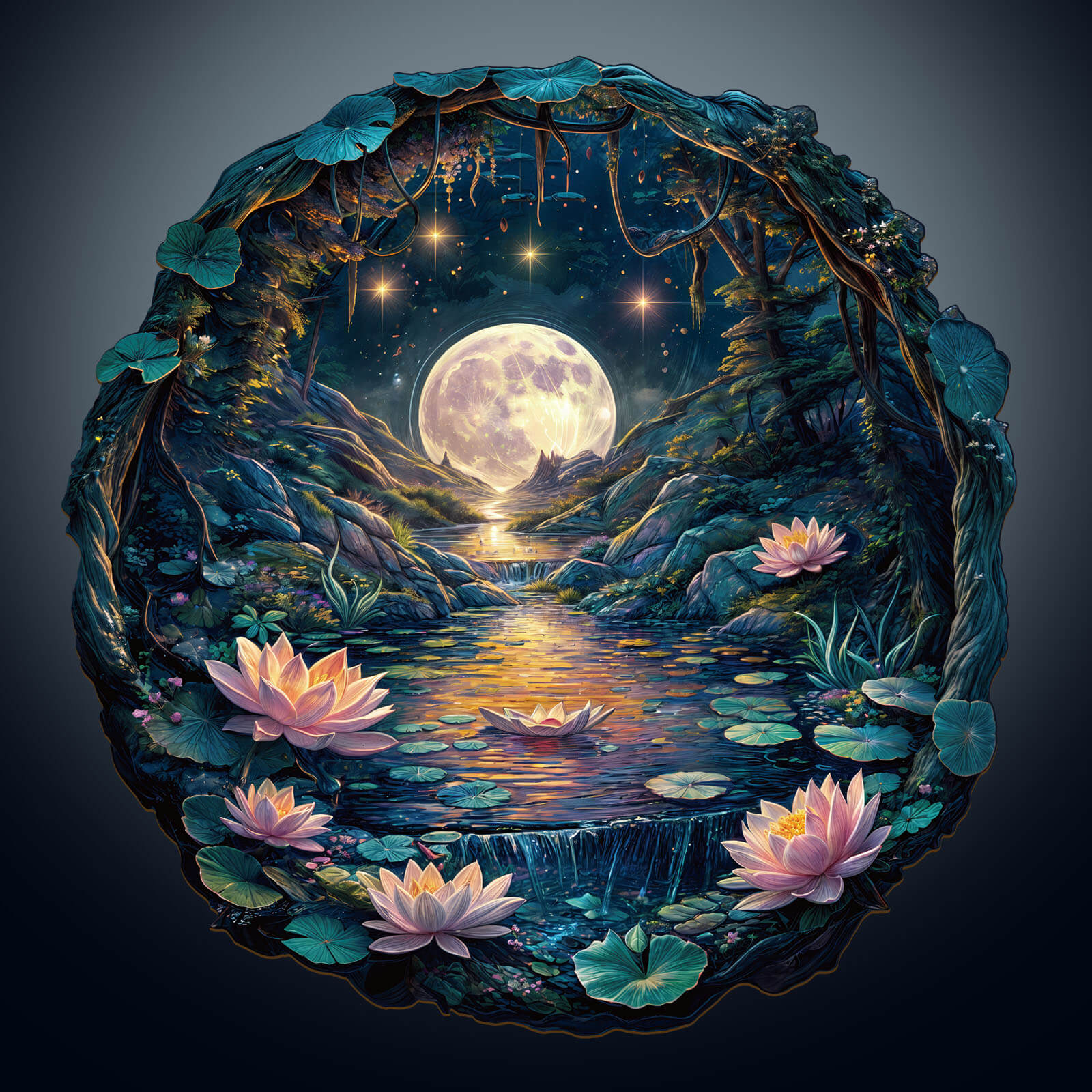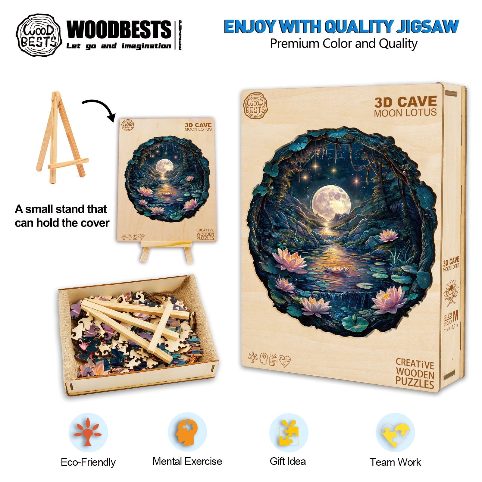 3D Cave Moon Lotus Wooden Jigsaw Puzzle - Woodbests