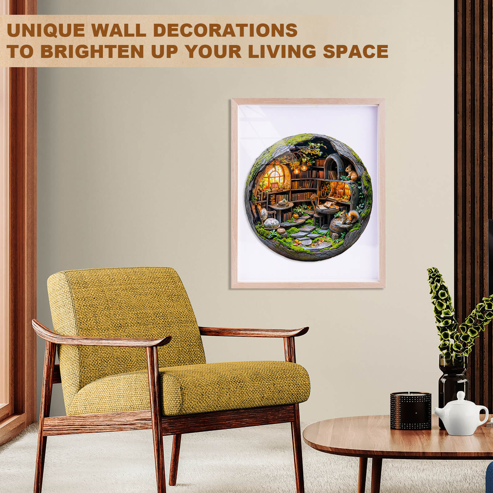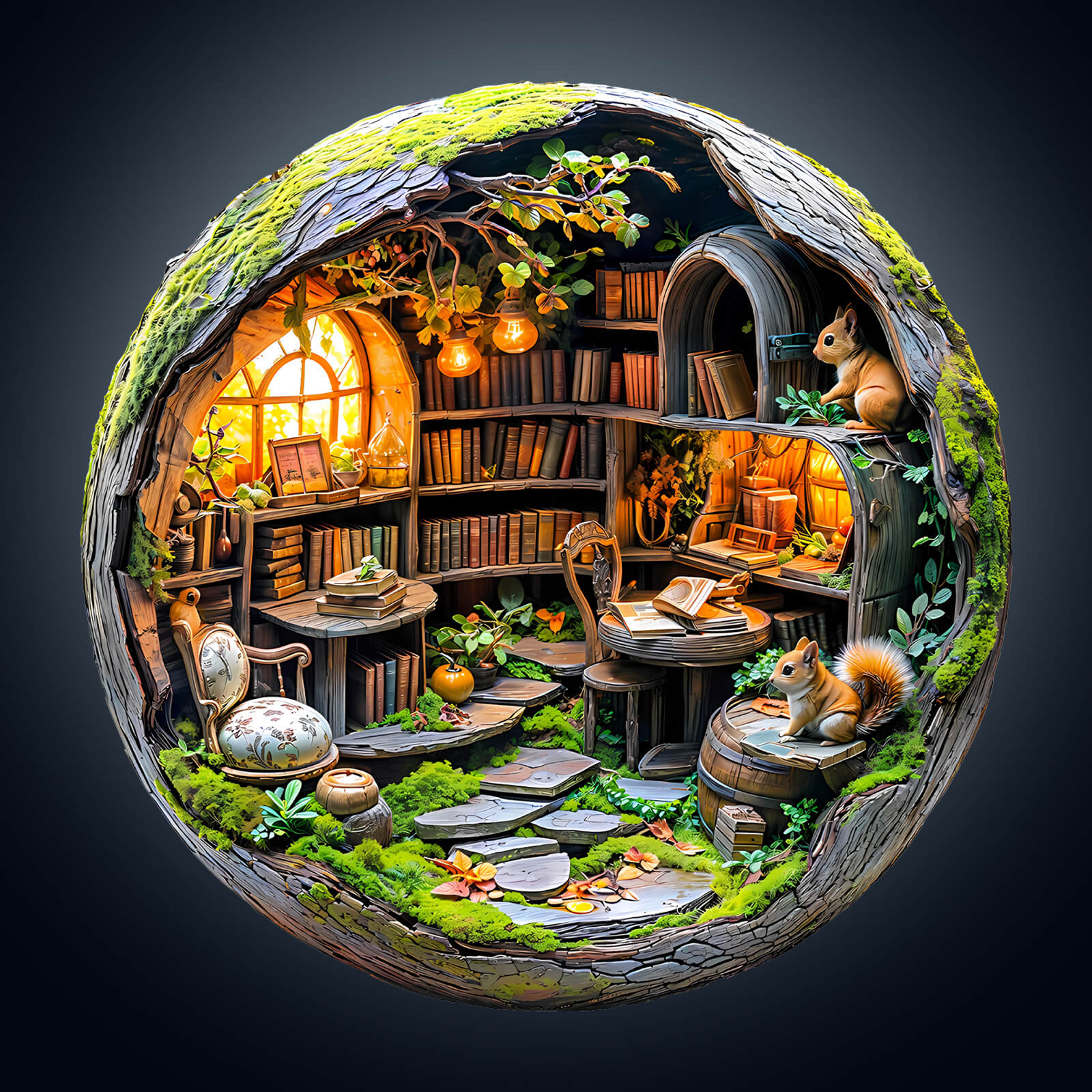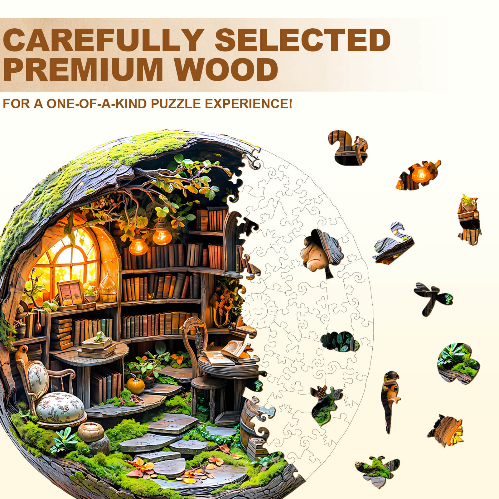 Moosbewachsene Bibliothek 3D-Holzpuzzle
